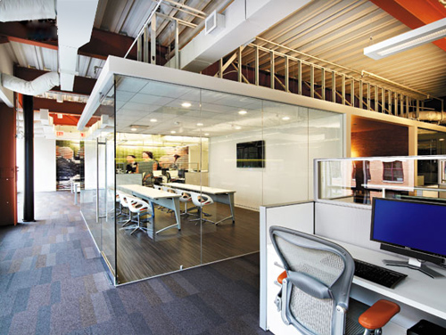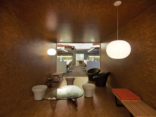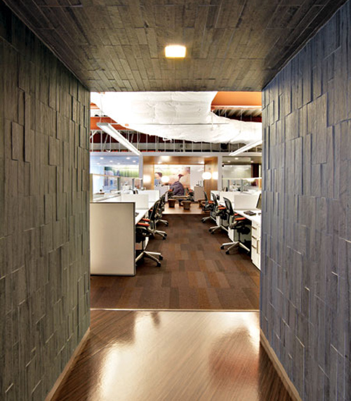 茶水區(qū)與工作區(qū)之間的通道裝飾墻。