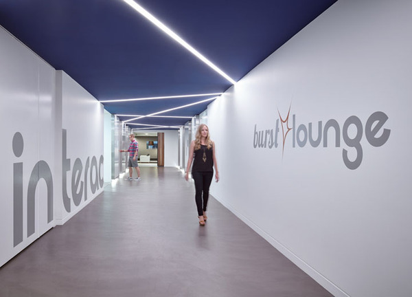 辦公室裝修設(shè)計(jì)以藍(lán)色來映襯橙色(公司標(biāo)識色),簡約而醒目的色塊組合營造出青春活力氛圍。整體色調(diào)與其企業(yè)風(fēng)格相呼應(yīng),形成統(tǒng)一的視覺體系。