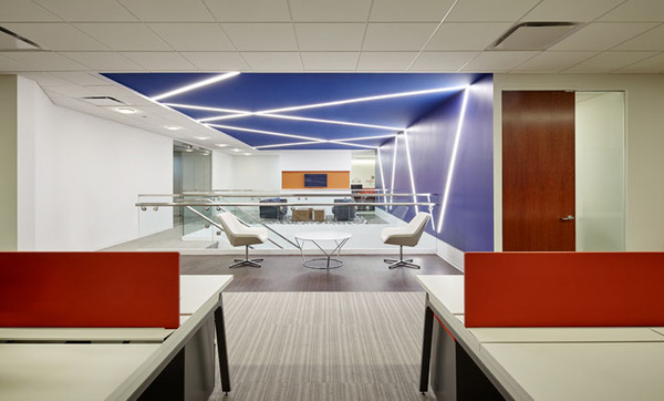 上海裝修公司-康藍(lán)裝飾今天要與大家分享的是,巧妙地利用動感光波營造辦公環(huán)境的辦公室裝修設(shè)計(jì)。設(shè)計(jì)師為其打造了一個充滿能量和動感活力的辦公室,以繼續(xù)保持不斷增長的無限潛力。設(shè)計(jì)師以此為設(shè)計(jì)核心,擴(kuò)建了一個新空間以補(bǔ)充和強(qiáng)化近期剛完成的改造工程。