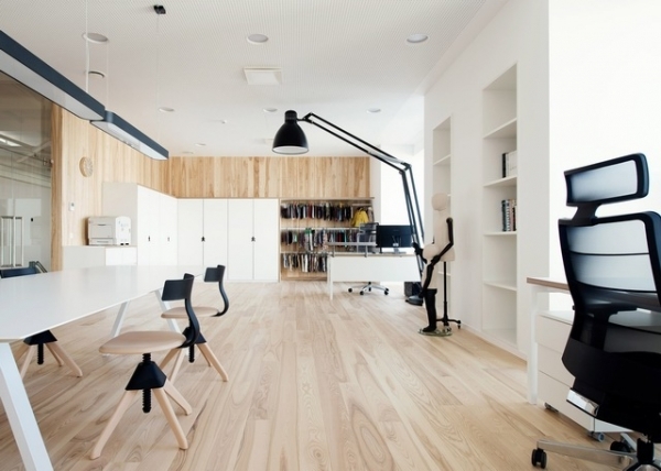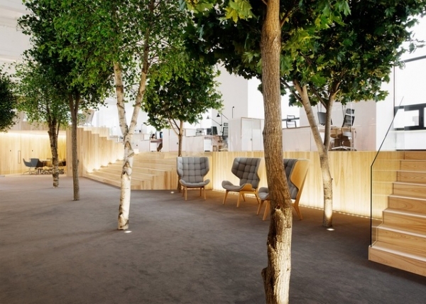 這是一個(gè)由廢棄工廠改建而成的兒童服裝公司辦公室裝修案例。設(shè)計(jì)師選擇原木作為*主要的設(shè)計(jì)元素制造出一些木屋,把它劃分為會(huì)議室、工作區(qū)、休息區(qū)等。辦公室里的公共區(qū)域還種植了五米高的樹木,在辦公室仿佛就置身森林,透過天窗和樹葉灑落的陽光,讓人感受到一個(gè)綠意盎然、溫情脈脈的夏日。