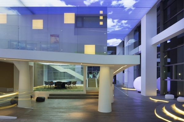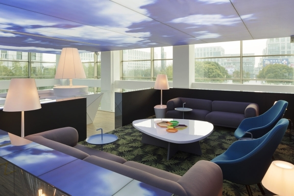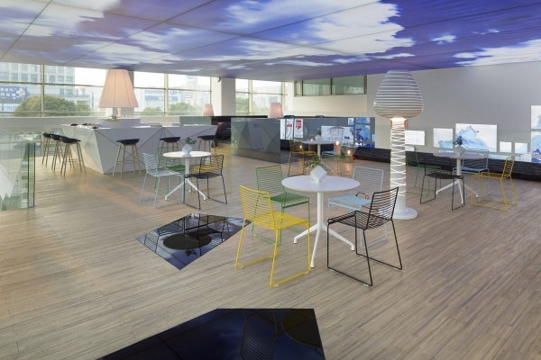 盡管這是個(gè)室內(nèi)空間,裝修設(shè)計(jì)師仍希望通過大自然的圖案為來客營(yíng)造舒適的感覺。天空?qǐng)D案的天花,樹形的支柱,植物圖形,明亮的淺色調(diào),木制材料和流線型的花園等,這些眾多的元素都將這個(gè)展廳裝點(diǎn)得與傳統(tǒng)意義上的售樓展廳與眾不同。