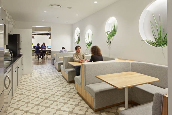 Wieden+Kennedy崇尚精誠合作的工作態(tài)度,因此設(shè)計師設(shè)計了多種多樣的公共空間用以隨時隨地的探討與對話。各種尺度的會議室、休閑金屬吧臺、舒適的午餐區(qū)、可以拉伸的木制會議桌、多功能運動或演講廳、藍莓叢中蜿蜒的座椅露臺等,為員工創(chuàng)造了各種開放性的活動場所。
