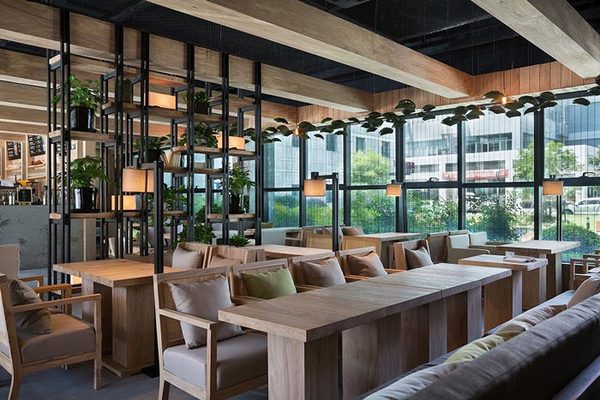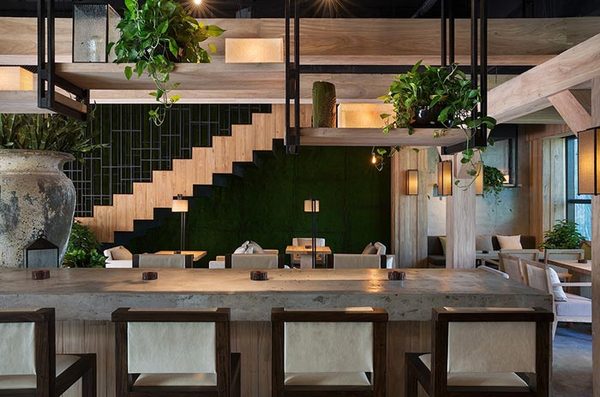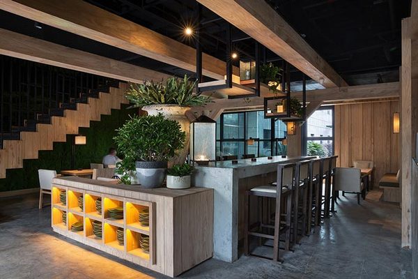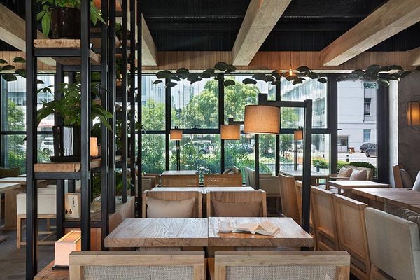 深色木條作為室內(nèi)墻面的主要材料奠定了整個空間的基調(diào),而整個中餐廳桌椅和配飾運用了不同程度的灰色,營造出一種神秘的氛圍,這就是該餐廳裝修設(shè)計的魅力!