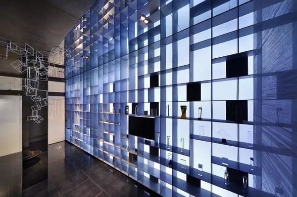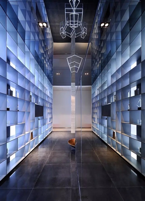 平面與立面的構(gòu)成在這個區(qū)域被潛移默化的表達(dá)出來,闡述著今世的解構(gòu)主義理念,實在、虛幻以及兩者的聯(lián)系。格子內(nèi)陳設(shè)著各項世界新的榮譽。在此基礎(chǔ)上,是非的界面在燈火的效果下煥宣布異樣的視覺感染力。