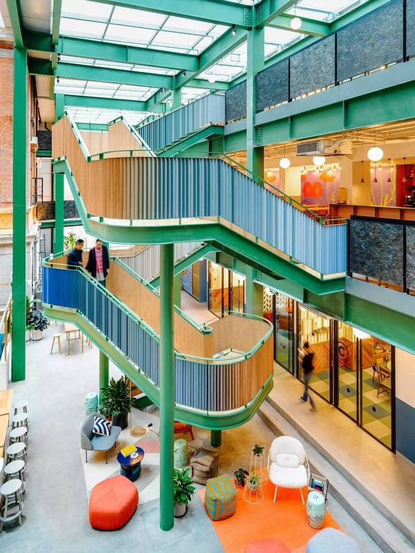 新建的聯(lián)合辦公空間內(nèi)保留了一些舊工廠的元素,設(shè)計(jì)師 Miguel Mckelvey 刻意營造出工業(yè)化“粗糙”、“地下”的風(fēng)格。