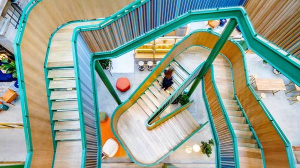 其中讓 McKelvey *自豪的改造就是立在中間的旋轉(zhuǎn)樓梯,可以看到樓下的全景,電梯被隱藏在了沒有人會(huì)注意到的角落,“逼”著人們走樓梯,去互相打招呼,人與人之間見面的次數(shù)多了,互相眼熟,也增加了社交的機(jī)率。