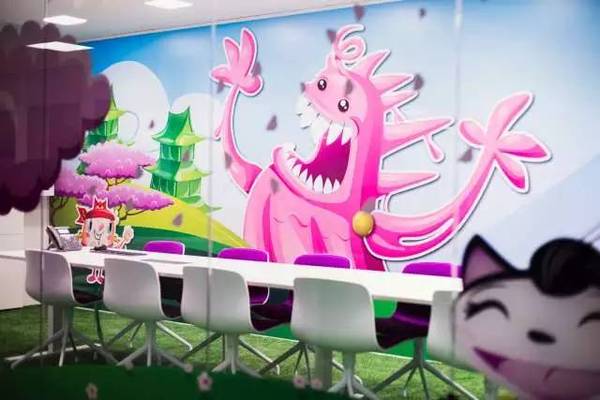游戲開發(fā)商國王(“糖果粉碎傳奇”的創(chuàng)造者)聯(lián)系設計師開發(fā)他們的新辦公室概念,其結(jié)果是一個色彩鮮艷的辦公室。