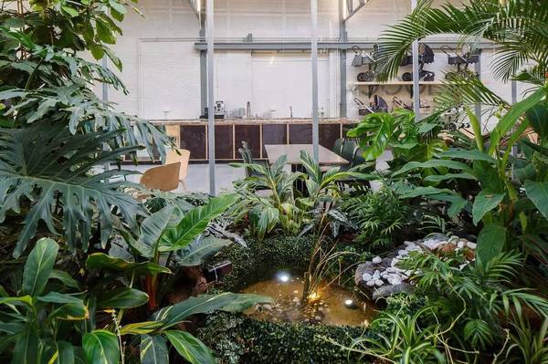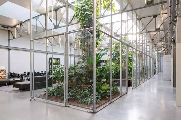由荷蘭Space Encounters工作室為設(shè)計(jì)和制造人體工程學(xué)童車的Joolz公司,剛剛完成了位于阿姆斯特丹北部的一個(gè)1600㎡的辦公樓改造。這座玻璃屋原來作為舊倉庫,設(shè)計(jì)者首先去除底層室內(nèi)的所有墻體,利用高聳的種滿植物的玻璃屋將整個(gè)空間分成兩個(gè)長(zhǎng)廊似的辦公室,玻璃屋一直連到屋頂,與天窗結(jié)合在一起。