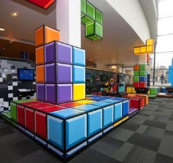 那么這組圖片又讓你想到了什么呢?啊,小編是不是暴露年齡了,這款風(fēng)靡于八九十年代的電玩機(jī)游戲“俄羅斯方塊”一度成為人手一“機(jī)”的游戲。這樣的辦公室設(shè)計(jì)讓小編又想起了曾經(jīng)被它狂虐的歲月了呢!