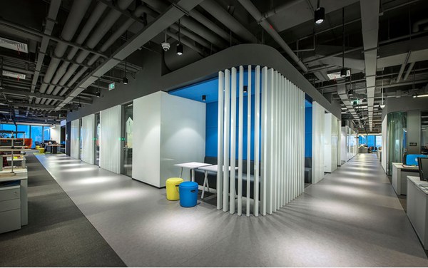 本案例采用木材表面、日光和綠色墻壁給‘休閑就餐’區(qū)域帶來了大自然的感覺。采用對(duì)比色的地板標(biāo)示出了環(huán)繞在辦公室核心地帶周圍的‘跑道’循環(huán)路線。激發(fā)獨(dú)特的全新辦公空間的創(chuàng)造力和協(xié)作性。領(lǐng)企設(shè)計(jì):m.8090ls.cn(領(lǐng)企設(shè)計(jì)官方網(wǎng)站更多相關(guān)內(nèi)容)