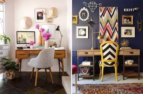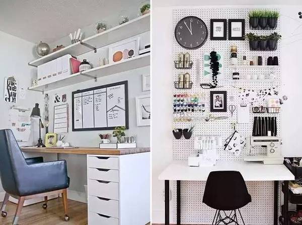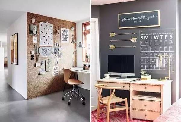 自由職業(yè)或是平時的工作沒有很強烈的需求的話,那就把它打扮的創(chuàng)意滿滿吧!像軟木墻或是任務墻這種墻面裝飾**是吸睛的打扮~