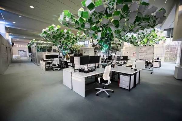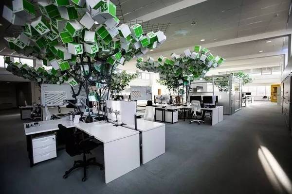 辦公室有36個(gè)工作場(chǎng)所、大量的會(huì)議室以及一間可以容納30人的培訓(xùn)室和很多的服務(wù)于團(tuán)隊(duì)工作的空間。在辦公室設(shè)計(jì)中,色彩是采用的經(jīng)典的黑白搭配,但是這其中*引人注意的是公共辦公區(qū)域的類似大樹(shù)的設(shè)計(jì)。“大樹(shù)”的主干是由簡(jiǎn)單的鐵架組成,樹(shù)冠是有一些印有公司logo的正方體構(gòu)成。從遠(yuǎn)處看就像是生長(zhǎng)茂密的大樹(shù)一般,十分形象。