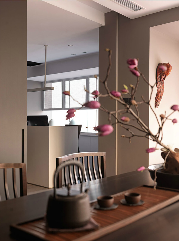 中式風(fēng)格辦公室設(shè)計非常講究空間的層次感,依據(jù)辦公室使用人數(shù)和私密程度的不同,需要做出分隔的功能性空間,一般采用“啞口”或簡約化的“博古 架”來區(qū)分;在需要隔絕視線的地方,則使用中式的屏風(fēng)或窗欞,通過這種新的分隔方式,通常的辦公室就展現(xiàn)出中式家居的層次之美。
