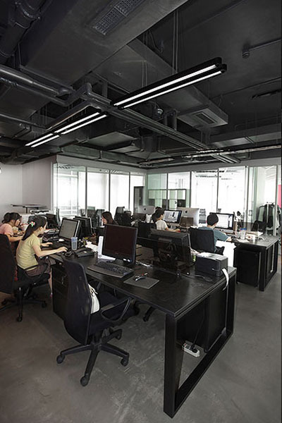 辦公隔斷獨具個性,鏤空的設計讓視線變得模糊又不至于封閉整個空間;地板仿佛是粗糙的水泥地板,事實上這種樸素的設計卻是出于裝修風格的要求。