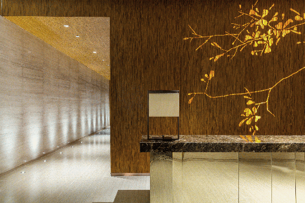 剛步入會所就被旋轉樓梯**至光線充裕猶如隧道般的走廊,咖啡廳內(nèi)的木材優(yōu)美地刻畫出空間的線條,搭配大自然色調(diào)的地毯及特殊的紋理,落地玻璃不僅映入戶外景色增強空間感,并巧妙地打造了與自然光線共生的聚會場所,隨著時間變化而讓光影在空間中翩翩起舞。