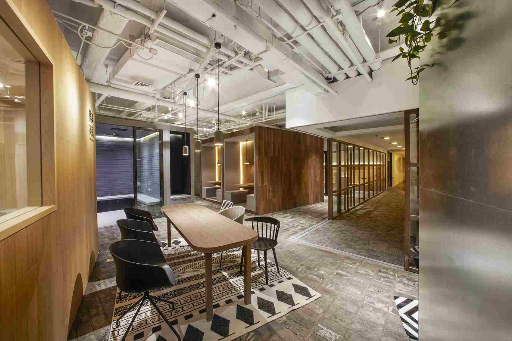 項(xiàng)目位于一座辦公樓內(nèi),業(yè)主租賃三個(gè)房間作為學(xué)校的辦公和培訓(xùn)區(qū)域。為了整合全部的空間的使用,設(shè)計(jì)師將其打通成為一整個(gè)房間。
