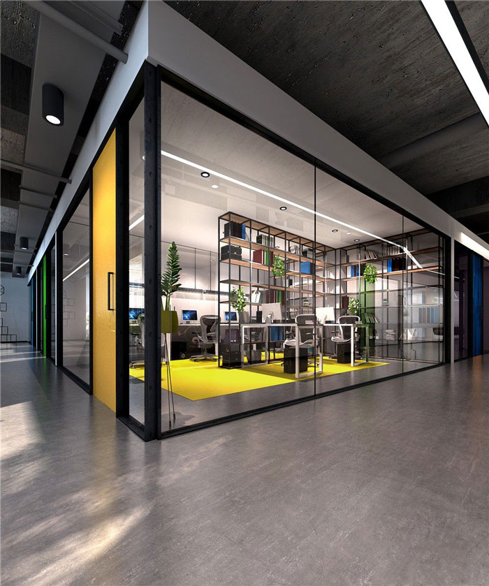 整體辦公空間的設計:設計師將其統(tǒng)一的安置在一個固定的區(qū)域,一則在辦公時不會受到其他因素的干擾,二則將空間開發(fā)利用實現(xiàn)**化。