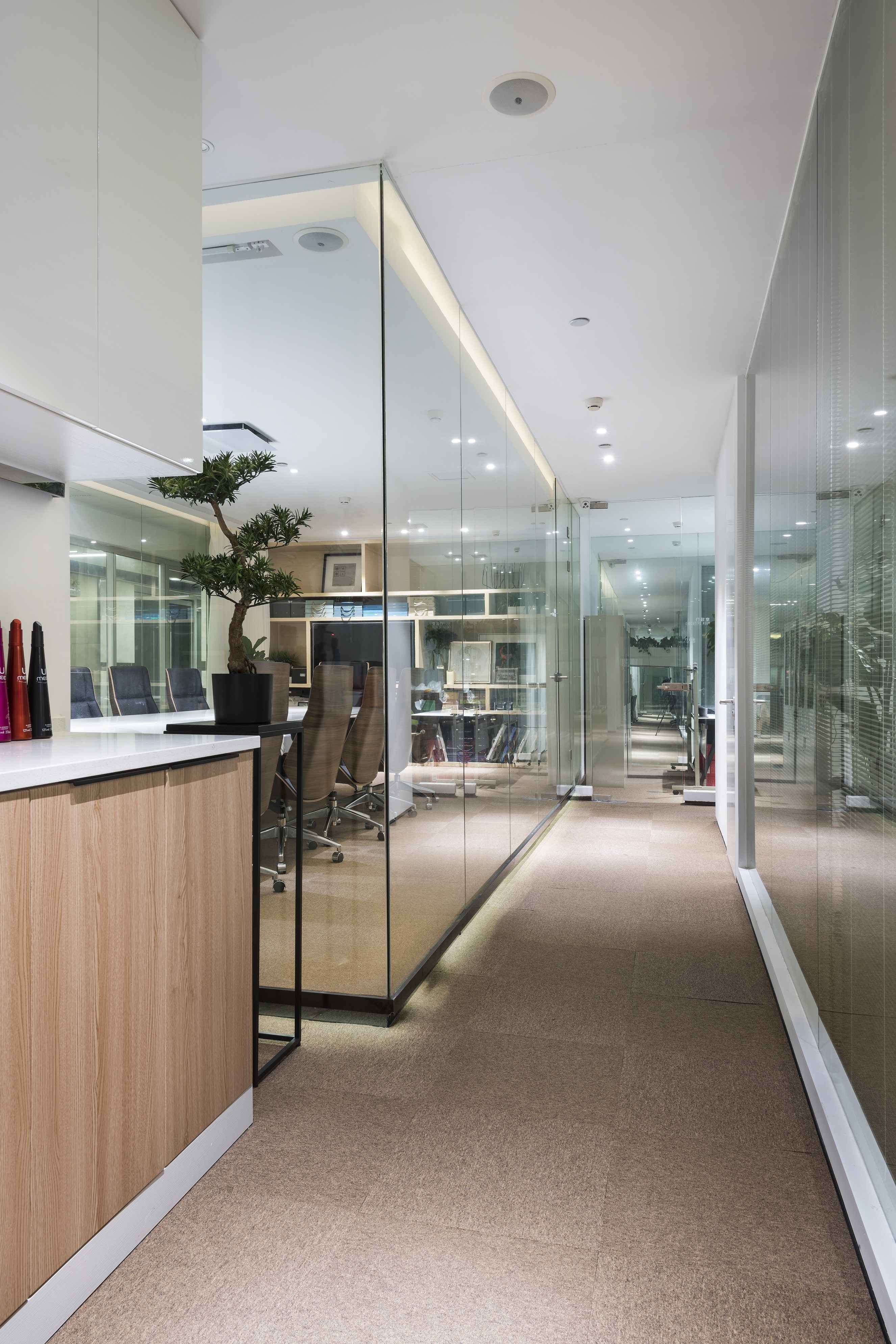 會議室以玻璃盒子為設(shè)計(jì)想法,運(yùn)用二次空間的形式,清楚地展示了空間里人與人之間的互動。