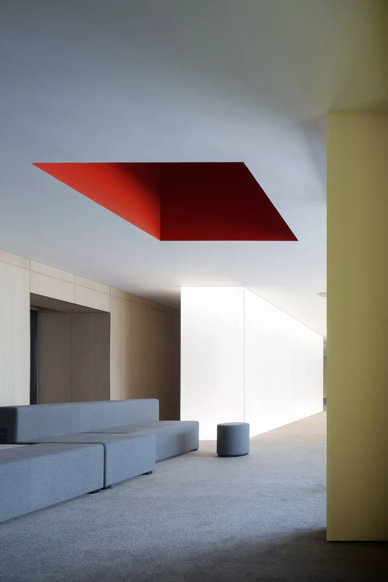 ![]() 中原地產(chǎn)在深圳經(jīng)過(guò)二十年的深耕,目前區(qū)域員工達(dá)到11000多人,是深圳規(guī)模**的專(zhuān)業(yè)地產(chǎn)代理公司。Peng & Partners (P&P)為其位于深圳后海的新總部辦公空間進(jìn)行了大刀闊斧、革命性的設(shè)計(jì)。 ?作為一家港資企業(yè),其過(guò)去20年的發(fā)展中,一直秉承著拼搏進(jìn)取、專(zhuān)業(yè)嚴(yán)謹(jǐn)?shù)南愀劬瘢@也反映在老的辦公空間的形象上。在當(dāng)下的重要時(shí)間節(jié)點(diǎn),企業(yè)希望融合深圳大膽創(chuàng)新的精神,活力、開(kāi)放與協(xié)作。 ![]() 整個(gè)項(xiàng)目包含建筑的四層樓,三層為辦公樓層,另一層為會(huì)務(wù)中心層。 大廳天花頂部的開(kāi)孔與立面的開(kāi)孔相呼應(yīng),呈現(xiàn)豐富而有趣的空間構(gòu)成和層次的延伸感。 ![]() ![]() “盒子”的概念貫穿整個(gè)設(shè)計(jì),通過(guò)相減、擠壓、鑲嵌、堆疊等, 對(duì)基礎(chǔ)的方塊進(jìn)行加工變形,產(chǎn)生不同的正相和負(fù)相空間,以不同組合方式,串聯(lián)起來(lái)。盒子的不同開(kāi)口方向和尺度,呈現(xiàn)出有趣的對(duì)比關(guān)系和節(jié)奏:私密與開(kāi)放、狹窄與舒張、幽暗與明亮… ![]() ![]() ![]() ![]() 每個(gè)單獨(dú)的盒子,被賦予簡(jiǎn)單純粹的色彩和材質(zhì),比如包裹墻面和天花的彩色吸音毛氈,有效降低與其他區(qū)域的相互干擾,實(shí)現(xiàn)**的聲學(xué)效果。人在里面活動(dòng)時(shí),空間和人的關(guān)系,以及人與人的關(guān)系變得更緊密而有趣,同時(shí)獲得一種沉浸式的空間體驗(yàn),使討論或工作變的更放松和專(zhuān)注。 ![]() ![]() ![]() 為了弱化傳統(tǒng)辦公室的緊張氛圍,公共休閑區(qū)配置了特別大的面積,包括大面積的垂直綠化墻、廚房及水吧。成為員工聚會(huì)、休息,或工作交流、頭腦風(fēng)暴的聚集地。模塊化的沙發(fā),能實(shí)現(xiàn)多變的組合方式,以及滿足員工360度全方位的無(wú)障礙溝通。 ![]() ![]() 9㎡部門(mén)經(jīng)理辦公室,在功能布置上做了很大的改變和創(chuàng)新,所有的功能構(gòu)件沿著空間四周墻面布置,儲(chǔ)物、辦公、休閑、閱讀及交流等,非常巧妙的銜接,使得小面積卻擁有寬敞舒適之感。 ![]() ![]() ![]() 會(huì)務(wù)中心層的發(fā)光玻璃墻,滿足了整個(gè)空間的照明,同時(shí)又成為空間的視覺(jué)核心,營(yíng)造出純粹、安靜、脫俗的藝術(shù)辦公空間氛圍。 ![]() ![]() ![]() ![]() ![]() ![]() ![]() ![]() 整體空間的人流動(dòng)線簡(jiǎn)潔清晰,工作交流快速**。 ![]() ![]() ![]() ![]() ![]() 空間的平面指示系統(tǒng)設(shè)計(jì),結(jié)合簡(jiǎn)潔的造型體塊、線條和光線,呈現(xiàn)出耳目一新、時(shí)尚優(yōu)雅的氣質(zhì)。 ![]() ![]() 整個(gè)設(shè)計(jì)過(guò)程中,都在嘗試對(duì)傳統(tǒng)的辦公方式帶來(lái)改變,創(chuàng)造一個(gè)嶄新愉悅的工作體驗(yàn)。 ![]() ![]() ![]() ![]() 平面規(guī)劃: 依據(jù)場(chǎng)地的條件,以及體現(xiàn)企業(yè)文化和對(duì)員工的關(guān)懷,優(yōu)先保證各個(gè)部門(mén)擁有*有利的采光、通風(fēng)和*佳的景觀視野,員工辦公區(qū)域設(shè)置在靠窗的位置,部門(mén)參照柱位劃分。其余的功能區(qū)塊,如儲(chǔ)物、洽談區(qū)、影印室以及電話亭等,沿建筑核心筒集中排列。 ![]() |