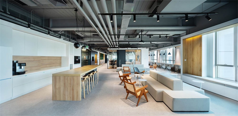 整體辦公區(qū)裝修空間大,員工聚集的地方,一定要注意空氣流通和光線充足的問題。這些都可以通過門、窗、燈來實(shí)現(xiàn)。確保人們?cè)谑孢m的環(huán)境中工作。