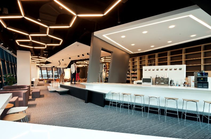 ? ? 德韋爾是一個(gè)工業(yè)材料集團(tuán)公司,化工和時(shí)尚。工作人員可以使用粉末室進(jìn)行頭腦風(fēng)暴和集中工作。辦公空間有不同的主題,根據(jù)他們所工作的品牌。在色彩和高對(duì)比度較強(qiáng)的線性設(shè)計(jì),前衛(wèi)的品牌形象是顯而易見(jiàn)的。